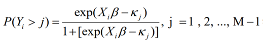 Do biến phụ thuộc là bao gồm các dạnh mục Likert 5 điểm nên chúng ta sẽ áp dụng mô hình hồi quy thứ tự sử dụng các danh mục tích lũy.