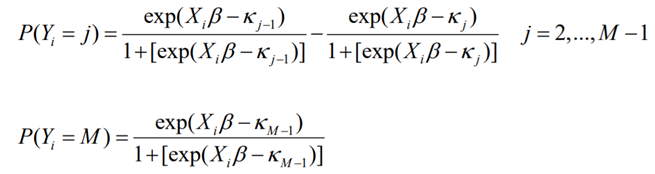 – Mô hình tích lũy: Y bắt nguồn từ việc phân loại một biến tiềm ẩn Y*, ví dụ, sử dụng giới tính để dự đoán biến phản hồi đối với một danh mục Likert 5-7 điểm.
